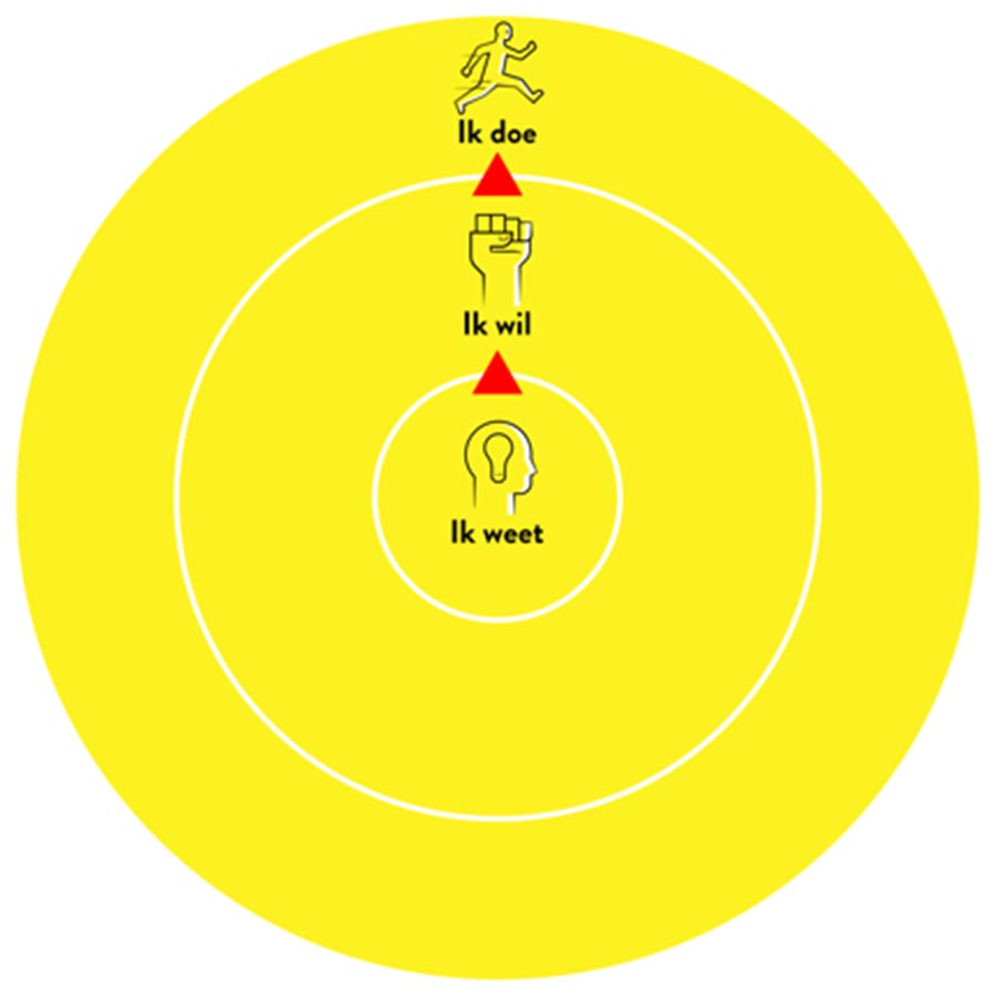 Je kunt je hersenen trainen om gelukkiger te worden. Als je vaak aan iets leuks denkt, zal je brein daarop reageren door nieuwe neurale verbindingen aan te maken. Zie het als nieuwe apps op een smartphone. Deze apps zorgen voor een andere, nieuwe kijk op leren. Denken aan geluk maakt gelukkiger. Zo is leergeluk ook maakbaar. De volgende drie stappen helpen je bij het creëren van leergeluk. Ze komen uit de Breinschool-cirkel: Ik weet, ik wil en ik doe.