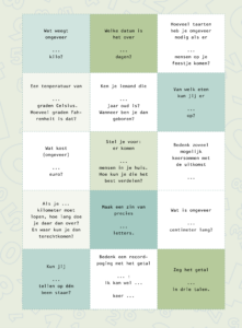 Met deze interviewkaartjes worden de kinderen via gerichte vragen uitgenodigd om lekker met elkaar te kletsen en mooie verhalen te vertellen!