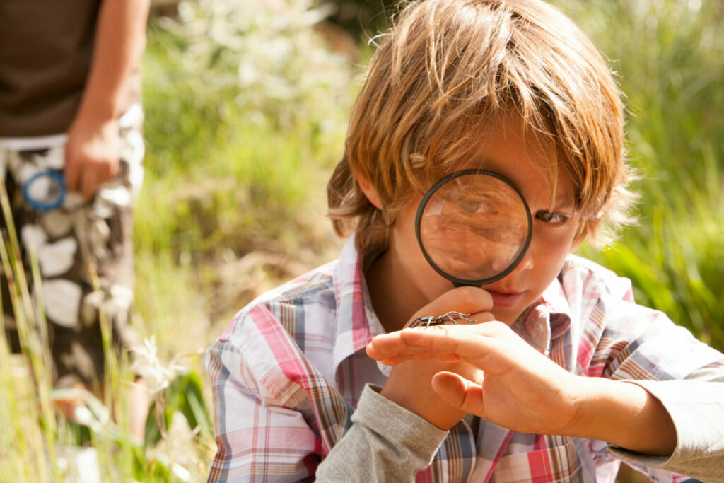 De herfst is begonnen en spinnen zijn hier een jaarlijks terugkerend fenomeen. Ik vraag wie er nog meer bang voor spinnen is. Een tiental vingers schiet de lucht in. ‘Mijn moeder is superbang voor spinnen!’ vertelt Mik. ‘Ze zuigt ze met de stofzuiger op!’