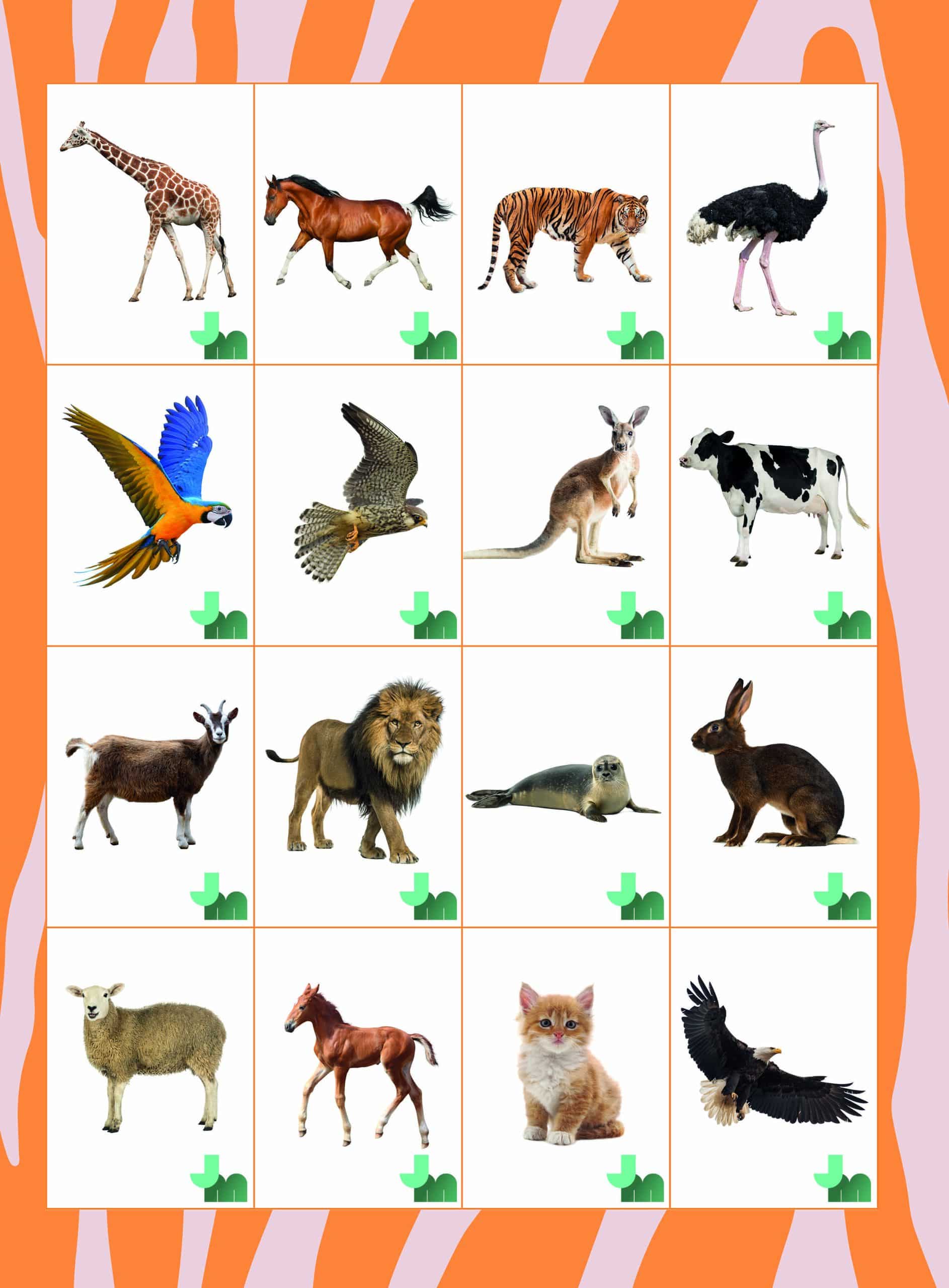 De kinderen lopen rond. Noem een categorie, bijvoorbeeld: Alle vogels / roofdieren / jonge dieren / boerderijdieren / dieren die je kunt aaienzonder-gevaar verzamelen! Deze kinderen gaan op een afgesproken plek bij elkaar staan.