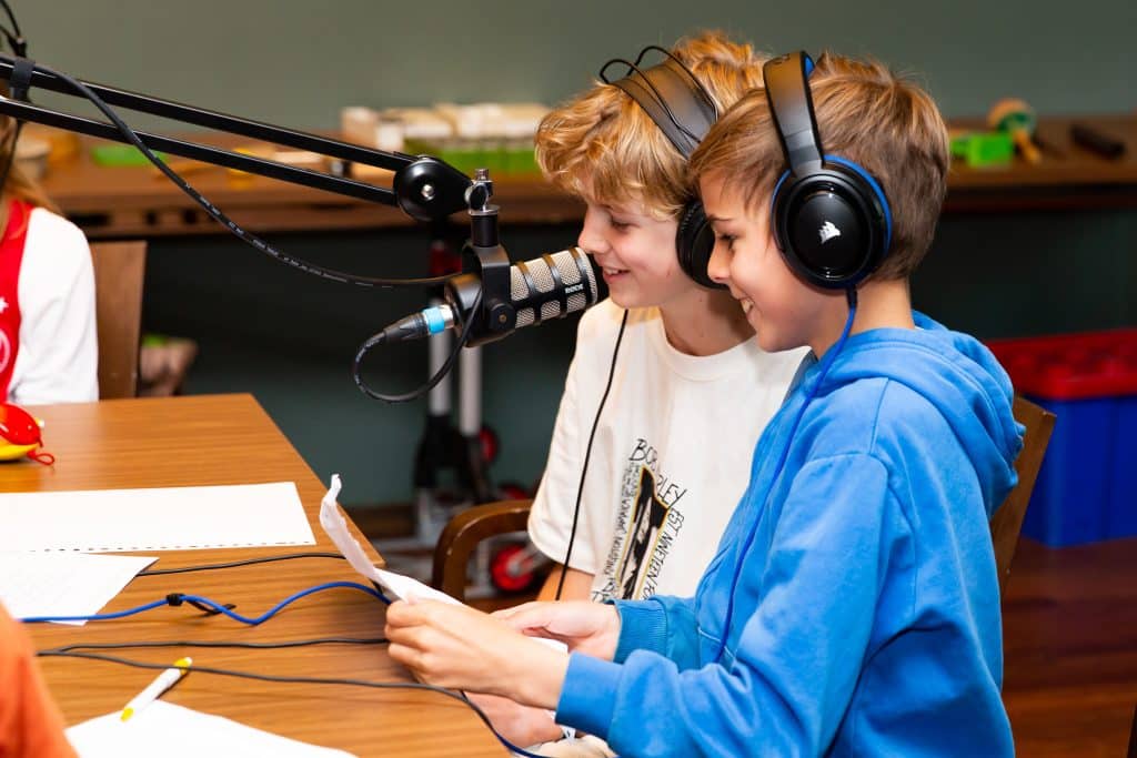 Tjeerd vindt podcasts een heel geschikt middel om de luistervaardigheid te oefenen. En dat blijkt ook uit onderzoek van kidslisten.org. Zo begint 75 procent van de kinderen die naar een podcast heeft geluisterd een gesprek over wat ze hebben gehoord. En meer dan de helft van de kinderen vertelt aan anderen wat ze hebben geleerd over de podcast of vragen om meer informatie. ‘Die intrinsieke motivatie van kinderen om meer te weten te komen, dat is waar we als leraar naar op zoek zijn. Als je audio gerichter inzet, krijg je meer gemotiveerde leerlingen. Dat is mijn ervaring in ieder geval’, vertelt Tjeerd lachend.