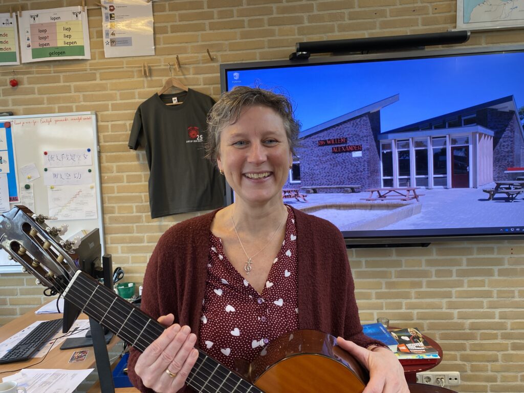 Ik hou heel erg van zingen. We starten met een lied en eindigen met een lied. Canon zingen bijvoorbeeld. Dat geeft veel sfeer in de klas. En ik ben heel duidelijk. Kinderen weten waar ze aan toe zijn bij mij. Ook ken ik de kinderen goed en zij mij. Ik woon op het dorp, dus ik weet wie hun ouders en grootouders zijn. Ik ken de oppas. En ik kom ze ook tegen in de kerk en in de winkel.