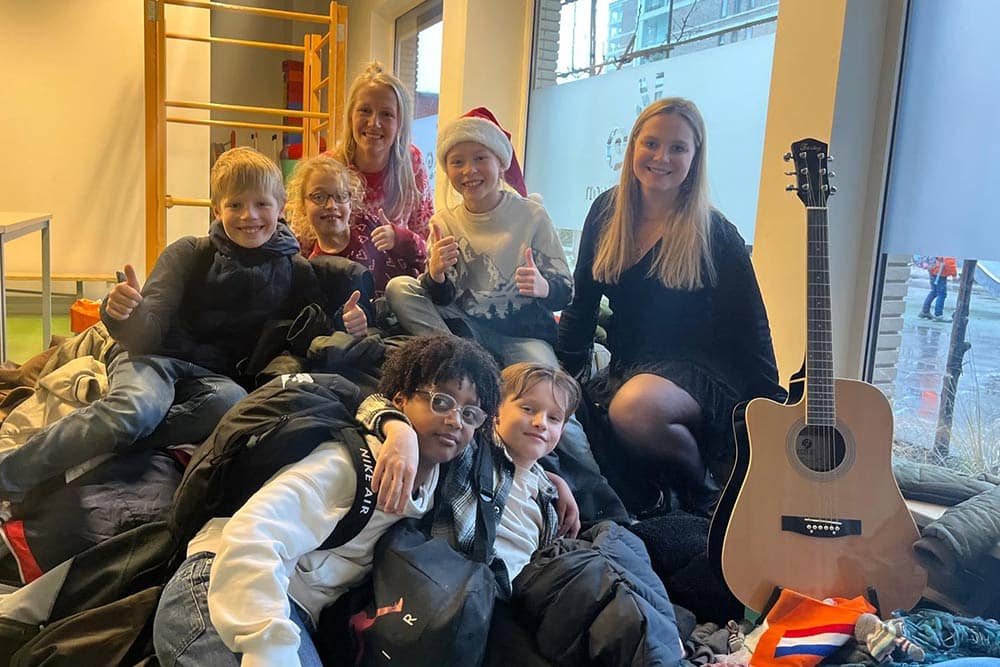 ‘Niemand mag het koud hebben met kerst,’ zeggen Fedde en Farsi uit groep zes. Op Kindcentrum De Kameleon in Den Bosch zorgen juf Roos, juf Maaike en collega’s samen met hun leerlingen voor warme jassen voor mensen in armoede. Hun vraag: ‘wat kan jij voor een ander doen?’