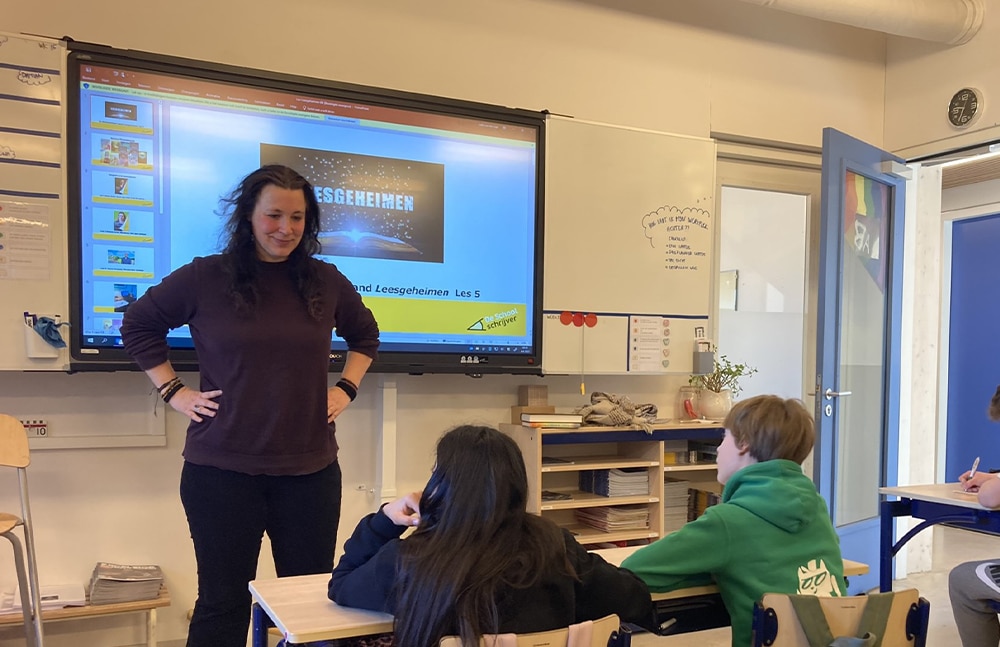 Kinderen vragen vaak: hoe moet ik doorgaan met mijn verhaal als ik het even niet meer weet? Ik antwoord dan: leg het even weg, laat het door iemand anders lezen, of schrijf het niet chronologisch. Je fantasie gaat vaak vanzelf meedoen als je gewoon begint.’