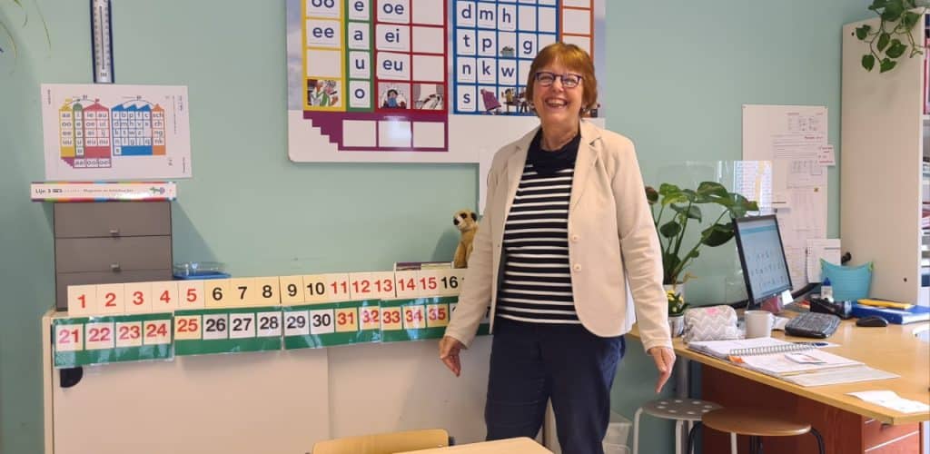 Ik weet het niet. Het gebeurt gewoon niet. Sowieso verandert er veel in het onderwijs. Elke jaar, elke dag is anders. Je hebt sterke rekengroepen, sterke taalgroepen, groepen die heel homogeen zijn, of juist met veel verschillende achtergronden en niveaus. En zelf denk na: dit heb ik vorige jaar gedaan, wil ik dat weer doen? Ik houd niet van saai. Er moet wel iets te beleven vallen. Daarom plan ik mij programma ver vooruit. Vooral voor de creatieve vakken. Zo hoef ik niet steeds hetzelfde knutselwerk te doen. Ook haal ik veel inspiratie uit nieuwe methodes. Hoe werkt die nieuwe methodiek? Ik maak er altijd aangepaste materialen bij voor extra herhaling of verdieping. Werkt het niet, dan gooi ik het weg. En ik kijk graag bij collega’s in de klas. Van de paralelklas of leerkrachten die ik ontmoet tijdens studiedagen bijvoorbeeld.