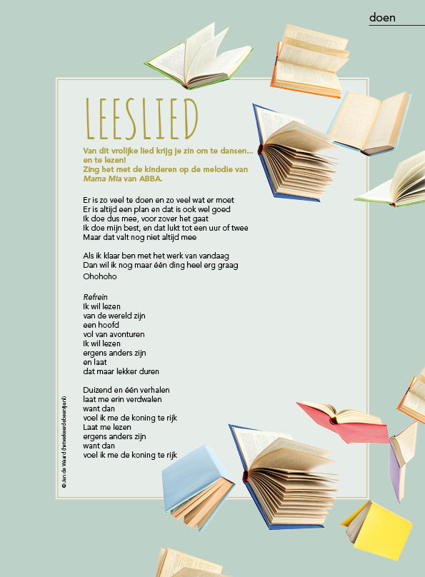 Van dit vrolijke lied krijg je zin om te dansen… en te lezen! Zing het leeslied – op de melodie van Abba’s Mamma Mia – met je collega’s en je leerlingen!