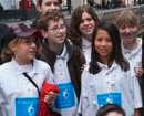 Alle reizigers van de geluksexpress krijgen van de leerlingen een retourtje geluk.