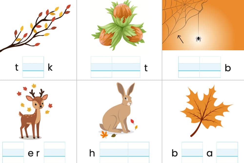 Wat een storm! De wind heeft alle letters weggeblazen. Wie vindt de letters terug en maakt de herfstwoorden weer compleet? Met deze speelse activiteit voor binnen of buiten oefenen de kinderen met de leesdoelen die passen bij het seizoen.