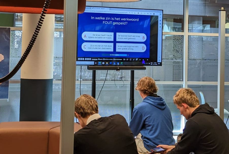 Janny legt uit hoe ze de voorronde hebben vormgegeven: ‘We hebben in Lesson-up een taalquiz klaargezet met meerkeuzevragen over taal. Dit is makkelijker voor de studenten en voor de docenten minder nakijkwerk. De vragen worden gelijk nagekeken en de antwoorden doorgestuurd naar de organisatie.’