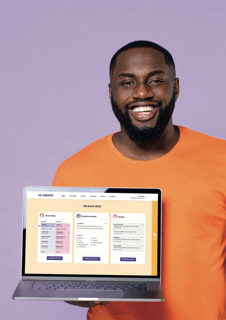 Momento is meer dan alleen een klassenmap; het fungeert als een overkoepelend digitaal platform dat leerkrachten helpt bij hun essentiële taken. Als een verzamelplek voor methodes, planning, resultaten, notities en overdracht, biedt Momento uitgebreide mogelijkheden om het werk van jou en je collega’s te vereenvoudigen en de werkdruk te verminderen.