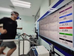 Elbert en Rachel doen conditietests in een laboratorium. Helpt een goede conditie tegen ziekmakende virussen en bacteriën?