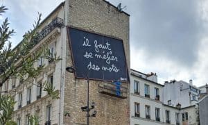 Déchiffrer, lire et comprendre un court poème écrit à la craie sur un mur à Paris.