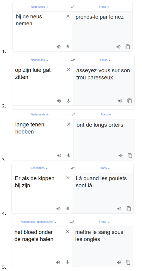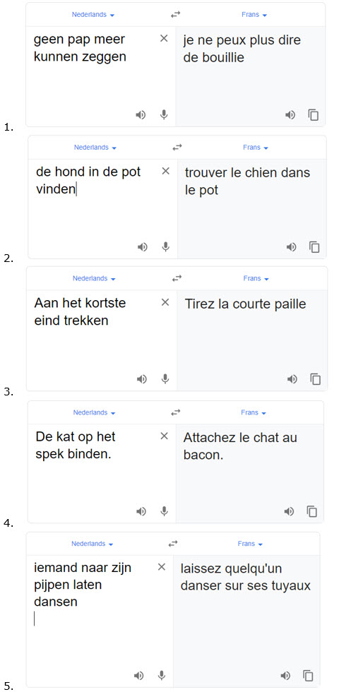 1. Voici quelques exemples d’expressions néerlandaises traduites par un programme de traduction. Corrigez les erreurs (dans la traduction littérale) s’il vous plaît !