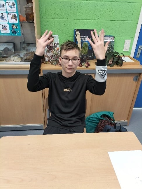 8 Welk biologisch begrip laat de leerling van de Kentalis Guyotschool hieronder zien? Hij beweegt zijn armen omhoog tot de getoonde positie.