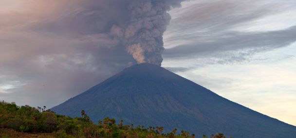 Vulkanen zijn vuurspuwende bergen. De naam komt van de Romeinse vuurgod Vulcanus. De Gunung Agung op het Indonesische eiland Bali is zo’n vulkaan. En hij is actief. Na meer dan een halve eeuw waarin hij zich gedeisd hield, rommelt het al sinds september in de ingewanden van de bijna volmaakt driehoekige kegel. Sinds die tijd trilt de berg. Ook bestookt hij een groot gebied met as die hij eerst zes kilometer de lucht in spuugt. Agung heeft in zijn directe omgeving gezelschap van nog enkele vulkanen zoals Gunung Batur. Samen met ongeveer 130 actieve vulkanen maken ze deel uit van een grote vulkanische boog in Indonesië.