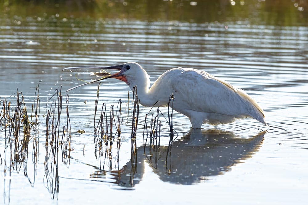 6 Camilla let op de slikbeweging van de lepelaars bij het verwerken van de gevangen vissen.