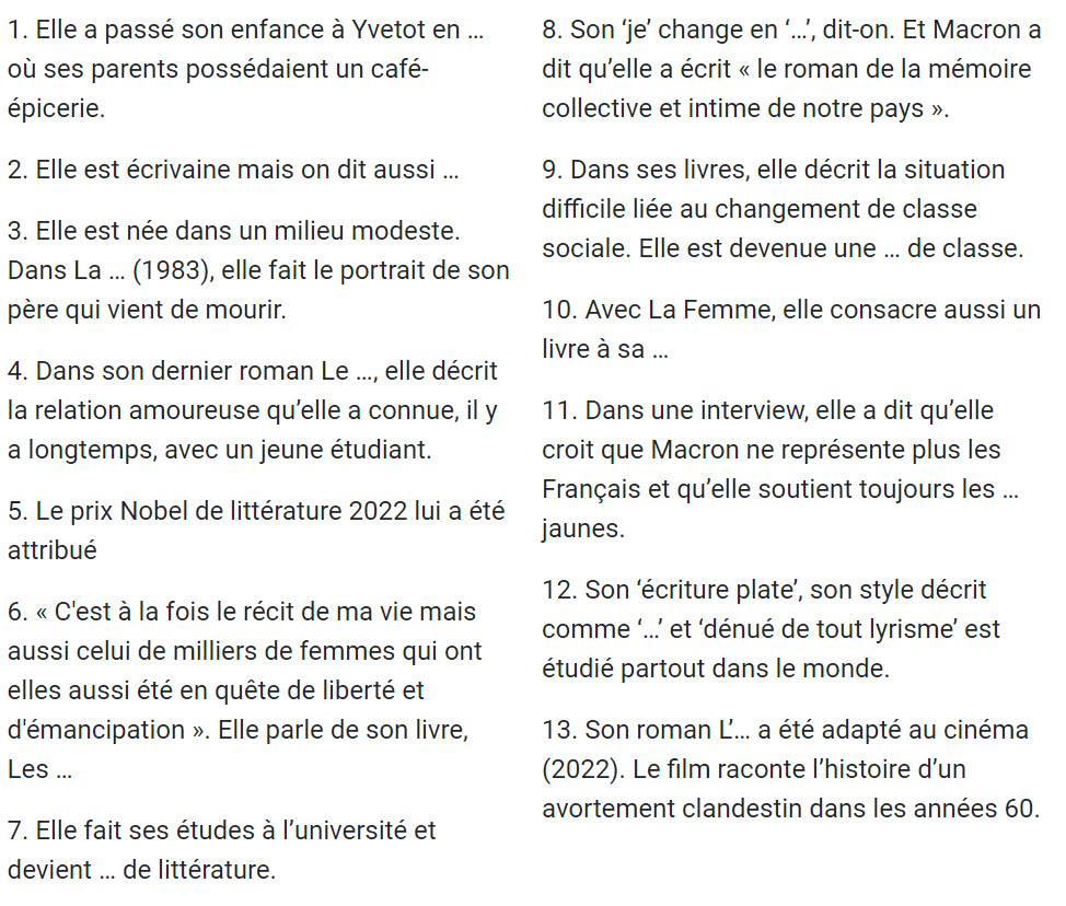 Une auteure française a reçu le Prix Nobel de littérature.