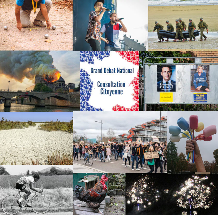 Voici une photo qui regroupe 12 images. Elles représentent douze sujets de l’actualité française de 2019 : un pour chaque mois.