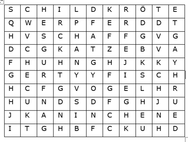3. Sucht im Wortsucher die zehn Tierarten: