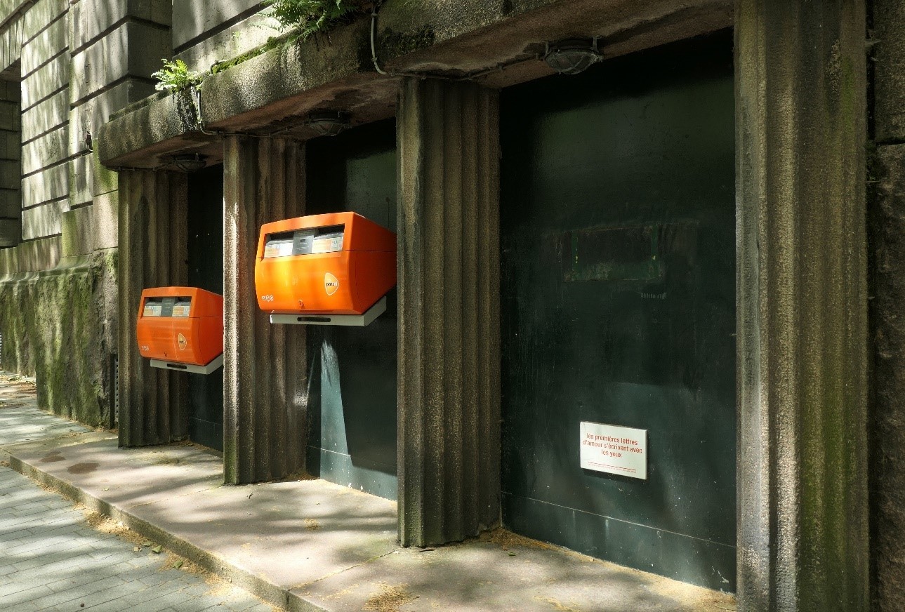 2. Voici l’endroit (près d’un bureau de poste) où se trouve le panneau. Pourquoi l’a-t-on accroché ici ?