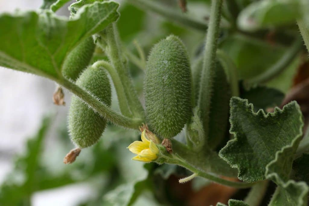 5 De squirting cucumber (spuitkomkommer) is eenhuizig: er zijn mannelijke en vrouwelijke bloemen in dezelfde plant. Toch gaat de bestuiving vaak via kruisbestuiving met een andere plant.