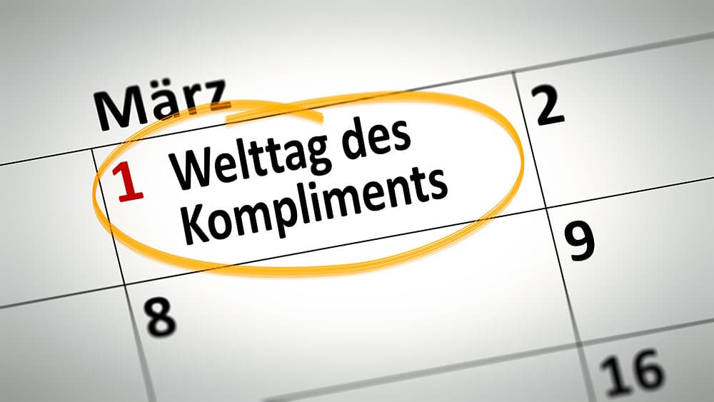Seit 2011 findet jedes Jahr am 1. März in Deutschland der Welttag der Komplimente statt. Dieser Tag hat seinen Ursprung in den Niederlanden. In den Niederlanden wird dieser Aktionstag seit 2003 gefeiert. Während dieses Tages soll man anderen Menschen durch nette Worte ein Lächeln auf das Gesicht zaubern.
