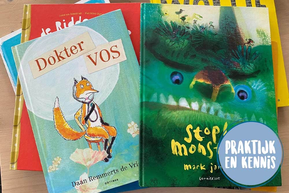 Het prentenboek Stop! Monsters! van Mark Janssen bijvoorbeeld bevat maar een woord: stop. Naarmate de technische leesvaardigheid toeneemt, kunnen de kinderen ook zinnen of specifieke fragmenten zelf lezen. Kies dan bijvoorbeeld het boek Dokter Vos van Daan Remmerts de Vries.Â