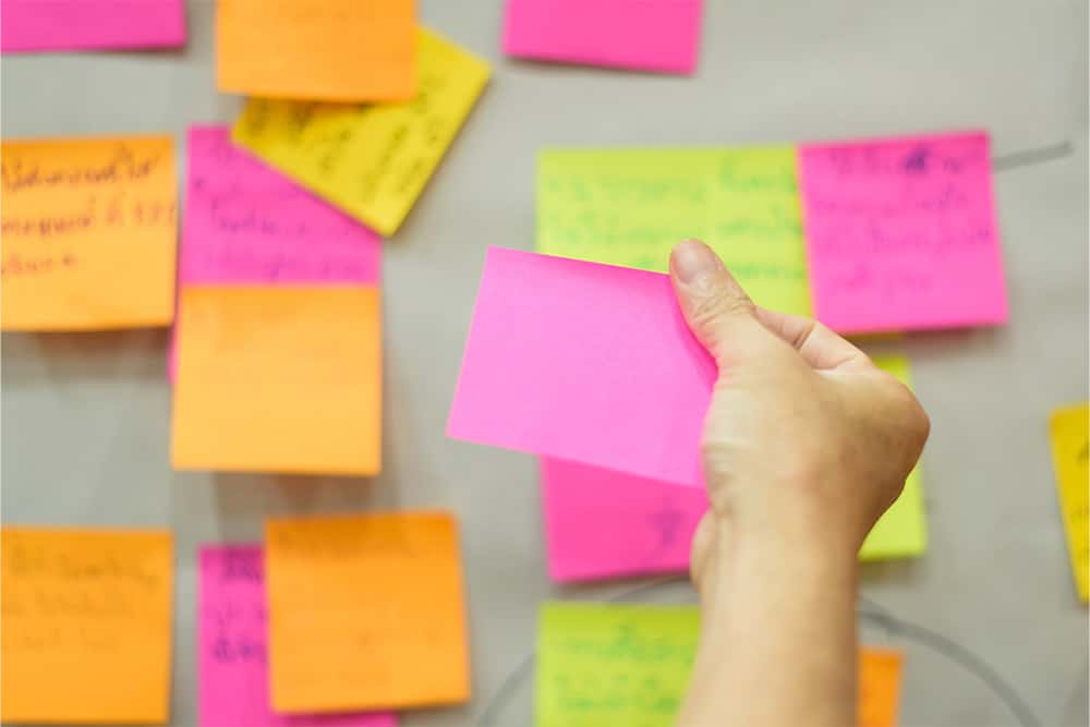 - Laat de leerlingen naar voren komen om al hun post-its op te plakken op het bord.